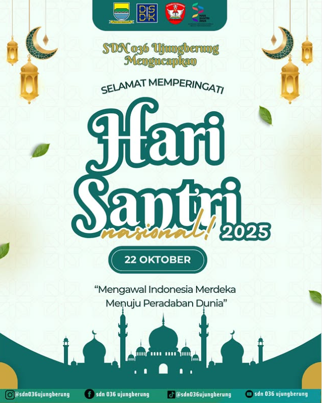 📿 SDN 036 Ujungberung mengucapkanSelamat Hari Santri Nasional 2025!Dengan semangat “Mengawal Indonesia Merdeka, Menuju Peradaban Dunia”,mari kita teladani perjuangan para santri yang penuh keikhlasan, kedisiplinan,