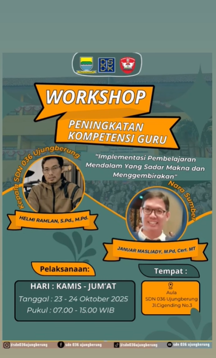 ✨ WORKSHOP PENINGKATAN KOMPETENSI GURU ✨Guru hebat adalah guru yang terus belajar dan berkembang 💪📚 Besok dan lusa, Kamis–Jumat, 23–24 Oktober 2025, SDN 036 Ujungberung