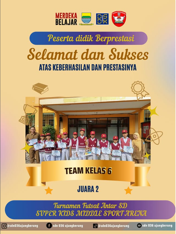 JUARA 2 TURNAMEN FUTSAL ANTAR SD SUPER KIDS MIDDLE SPORT ARENA KELAS 6* 1. Firli Danendra A 6C2. M.Bintang Fajar Nuurrohim 6C3. Rai Putra Ramdhaniyansyah