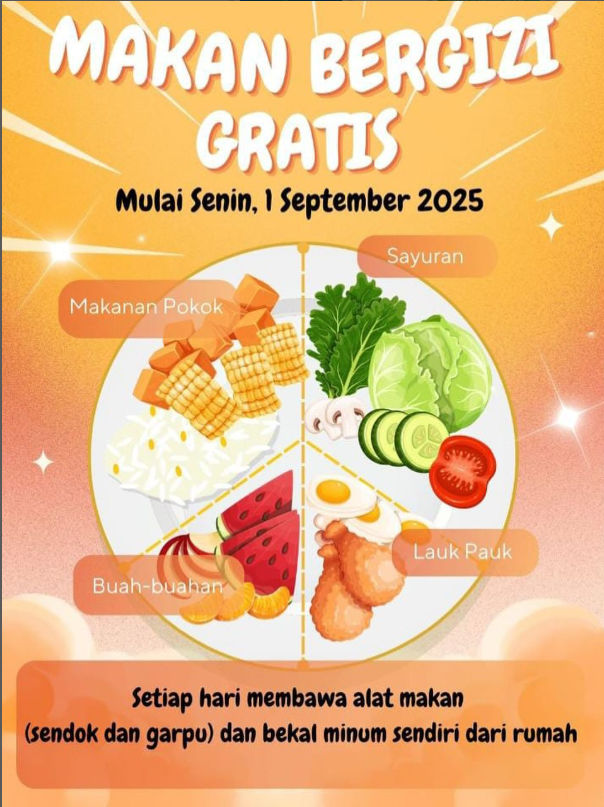 π’ Himbauan untuk Orang Tua dan AnakDalam rangka program Makan Bergizi Gratis yang akan dimulai pada Senin, 1 September 2025, kami mengajak Bapak/Ibu untuk: 1οΈβ£